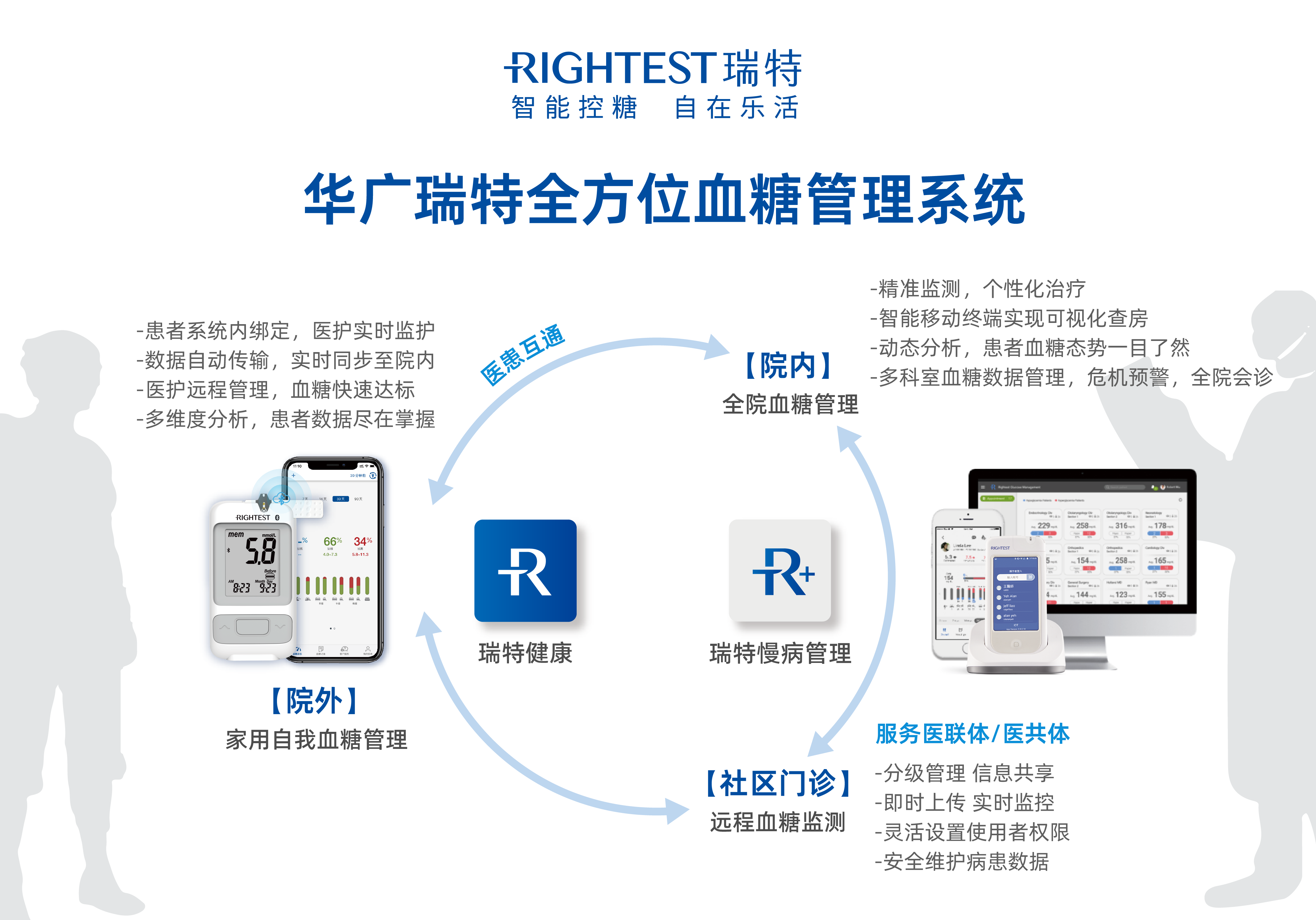 隨著科技的不斷進步和社會的發(fā)展,以及政策和臨床業(yè)務(wù)的需求驅(qū)動,慢病管理的趨勢將更加傾向于精細化、全面化和個性化。作為“互聯(lián)網(wǎng)+醫(yī)療”時代的產(chǎn)物,無科界慢病管理契合這一發(fā)展趨勢,能夠通過跨學科、跨領(lǐng)域,跨部門的合作,降低醫(yī)療成本和提高診療效率,促進學科建設(shè)融合與創(chuàng)新突破,是所有醫(yī)院高質(zhì)量發(fā)展過程中的“必選項”之一。面對智慧醫(yī)院新發(fā)展格局下的多元需求,瑞特將不斷與慢病管理的生態(tài)協(xié)同體系拓寬應(yīng)用場景,讓數(shù)字化慢病管理真正打破傳統(tǒng)血糖管理系統(tǒng)的“邊界”,賦能醫(yī)療健康行業(yè)走向價值共創(chuàng)之路,讓更多人擁抱健康。