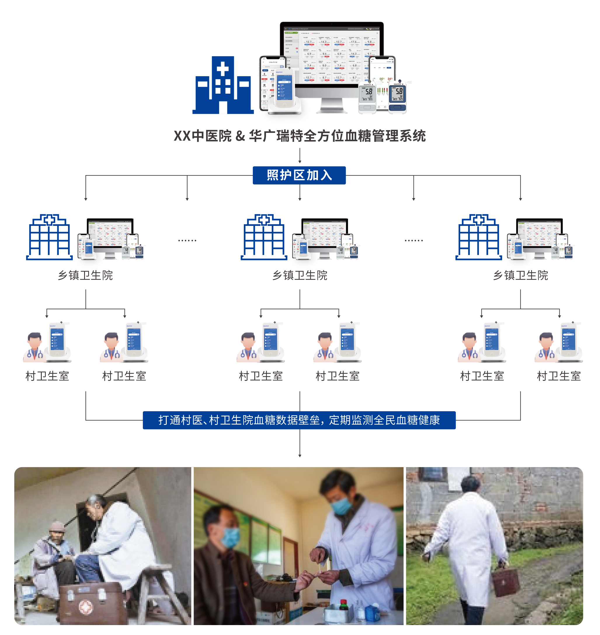 近年來,華廣瑞特為醫(yī)療機(jī)構(gòu)與糖尿病患量身打造的“全方位智能血糖管理系統(tǒng)”,以信息化建設(shè)為支撐點(diǎn),建立起了“三級(jí)醫(yī)院糖尿病診療中心+二級(jí)區(qū)級(jí)醫(yī)院+基層醫(yī)療衛(wèi)生服務(wù)機(jī)構(gòu)+家庭醫(yī)生”糖尿病一體化管理模式(即“四位一體”模式),打通了“市-區(qū)-社區(qū)”三級(jí)服務(wù)流程,實(shí)現(xiàn)了醫(yī)療資源上下貫通、信息互通共享、業(yè)務(wù)高效協(xié)同,助力糖尿病分級(jí)診療工作的切實(shí)落地,提升了區(qū)域慢性病服務(wù)管理水平。